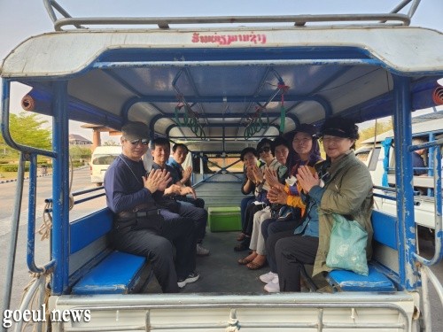 강진에서 광주로 다시 인천공항으로 7시간 이동 끝에 다음날 아침 9시30분 라오스 라오 항공에 몸을 싣고 5시간 30분의 긴 비행 후에 수도 비엔티엔 국제공항에 도착하게 된다. 한나라의 수도 공항이라지만 우리나라 지방 공항보다 훨씬 시설이 미비함을 피부로 느낄 수 있었다. 이곳에 오기 전에 날씨를 살펴보니 낮 최고 30도다. 아침저녁으로는 18도 내외라서 그야말로 여행하기 딱 좋은 날씨라는 생각이 들었다. 입국 수속을 마치고 공항을 나서니 사람들의 옷차림에서 아, 여름이구나라는 생각이 들며 습도가 전혀 없는 상쾌함이 가슴에 스며들었다. 이번 여행에 함께 길잡이가 되어 줄 가이드가 우리 일행을 반갑게 맞아준다.